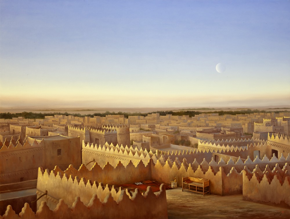 EVENING LIGHT OVER OLD RIYADH Oil on canvas 127cm x 168cm