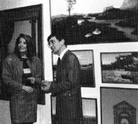 At the Adrian Mibus stand, Bouchard with Laurence Quellet at the 1991 International Contemporary Art Fair at Olympia.